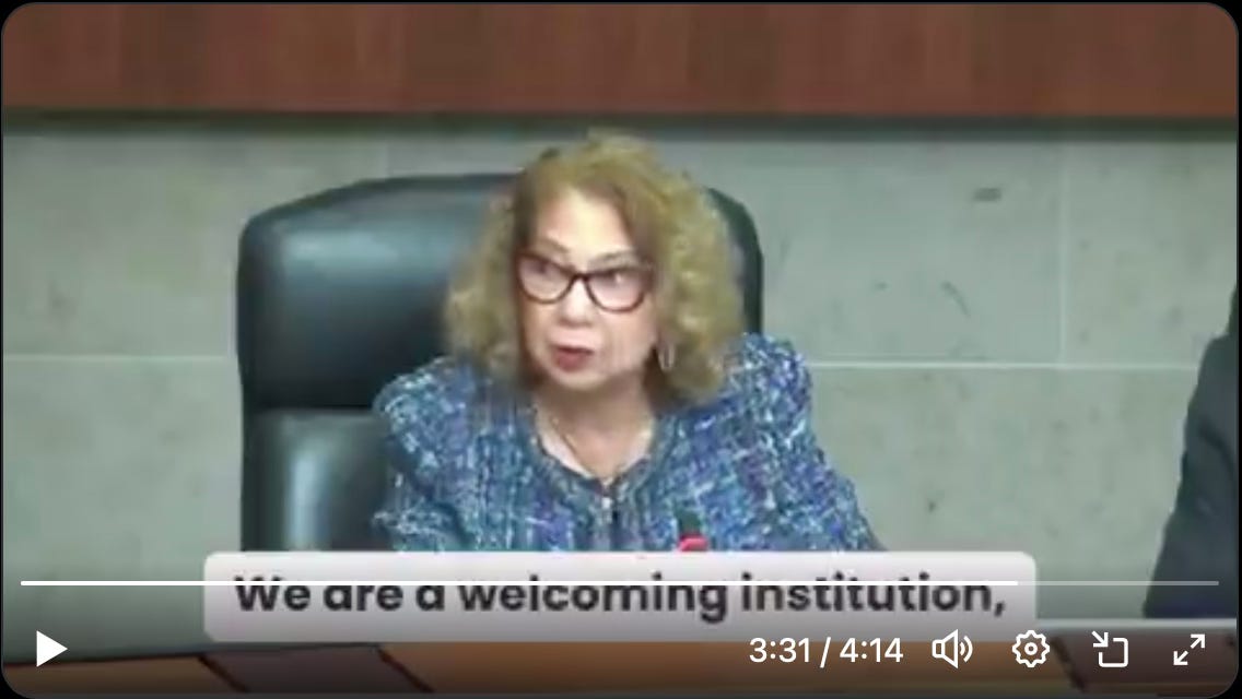 I’m Allison Foote, treasurer for the Independent Council on Women’s Sports. San Jose State’s refusal to follow the OCR’s resolution agreement and hold itself accountable to the women whose volleyball season was destroyed and consent was compromised is an embarrassment to the entire CSI system. The school, among other things, gave a man a full women’s volleyball scholarship, concealed his sex from players and parents, put him in women’s locker rooms and hotel rooms on road trips, and prompted five women’s team to forfeit. Yet CSU is actually suing the federal government and offering nothing but its full support to the male athlete. This is CSU-sanctioned sexual abuse of the women you are obligated to protect. Your internally inconsistent Title IX and DHR guidelines that prioritize gender identity over sex have created the hostile environment unfolding before you now, but most importantly for the two hundred and six thousand women enrolled on your campuses. The adults in this room have failed all of them. Apparently, CSU is where safety and respect belong to everyone except women.
